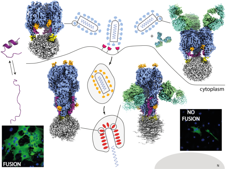 Cryo-EM structures of VSV glycoprotein G, alone or in complex with a neutralizing antibody, reveal new insights into the mechanism of membrane fusion and antibody neutralization.