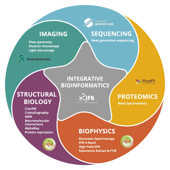 The I2BC facilities are integrated into 5 National Infrastructures in Biology and Health (FRISBI, France Génomique, ProFI, France-BioImaging and Institut Français de Bioinformatique) and most of them are recognized at national level by the IBiSA label. The 500 annual users of the facilities have access to state-of-the-art technologies and methodologies. The facilities perform research and development, in collaboration with other national centers and with I2BC teams. Finally, the facilities are committed to training: each year, they train ~250 users and are involved in ~10 workshops and meetings.